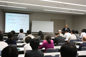 講 師:加藤 眞三(慶應義塾大学看護医療学部教授) 講座要旨: 「第159回大本公開講座」は、5月18日午後7時から、港区新橋の航空会館で開催され、加藤眞三慶應義塾大学看護医療学部教授が「患者の力を身につける~がんの時代を生き抜くために~」と題して講演した。参加者は51人(内、一般18人)。 講座では、「大本が説くように、時代はあらゆる分野で大転換期を迎えている。医学・医療も同じで、がんについても同じことがいえる。現代医療はさまざまな選択肢が患者に与えられている。患者力を高め、賢く生き抜くことが必要」と結んだ。 参加者からは、「がんと生活習慣の関係等、新たな知識が増え、大変勉強になった(女性・一般)」等の声が寄せられた。 |