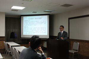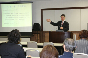 講 師:小藪 資史(特派宣伝使) 講座要旨: 第165回「大本公開講座」は、11月16日午後7時から、港区新橋の航空会館で開催され、小藪資史特派宣伝使が「農は国の大本(たいほん)~今求められる食・農問題~」と題して講話した。参加者は14人(内、一般2人)。 講師は、「大本のみ教えの根本である開祖さまのお筆先に、初期の頃からお土の大切さが一貫して示されている」として、「日本人が長年培ってきた、お日さまやお土さまに感謝し、手を合わせる心が大切」と説き、お土を尊ぶことは農を尊ぶことであり、ひいては国風を守ることに繋がるとして、TPP問題などで日本が揺れる今、農本主義、天産物自給自足の精神に立ち返らねばならないと結んだ。 参加者からは「お土を拝む心や酵素農法についてなど、深く学ぶことができた」(一般・男性)、「自宅に狭い土地が放ってあるので、お土を無駄にしないように、すぐに何か植えようと決めました」(信徒・女性)などの声が寄せられた。 |