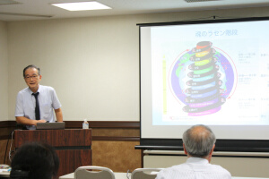 講 師:中里 洋(教学研鑽所事務局員) 講座要旨: 「第161回大本公開講座」は、7月20日午後7時から、港区新橋の航空会館で開催され、中里洋教学研鑽所事務局員が「神と人の関係~人は神の子神の宮~」と題して講話した。参加者は26人(内、一般6人)。 講師は、「人は神から霊力体の三元を賦与され生かされている」として、自身の経験談を交え、一霊四魂を与えられている〝人〟の尊さ、現界に生を受けている人としての使命などを力説した。参加者からは、「人の魂が、勇・親・愛・智と、働きによって細かく分かれることを知りました(男性・一般)」等の声が寄せられた。 |