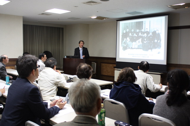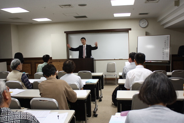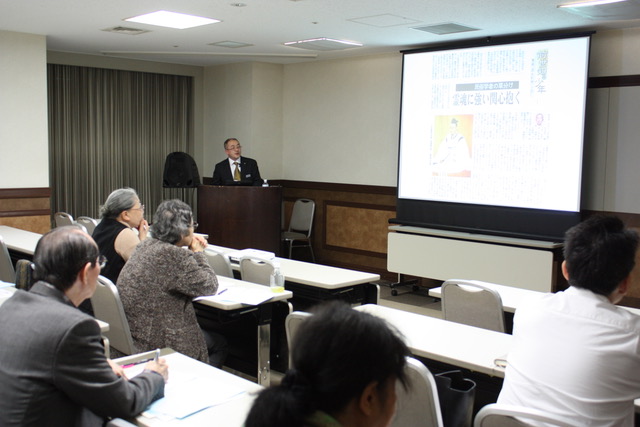 講 師:出口 眞人(大道場講師・社会福祉法人愛善信光会理事長) 講座要旨: 第164回「大本公開講座」は、10月19日午後7時から、港区新橋の航空会館で開催され、出口眞人大道場講師(社会福祉法人愛善信光会理事長)が「出口すみこが現代に残したもの」と題して講話した。参加者は55人(内、一般25人)。 講師は、「出口すみこは、人は天地のご恩によって生かされていることを一貫して説いた。一人ひとりが感謝の心を持つことが大切」として、第二次大本事件での獄中生活や芸術活動、世界連邦運動など世界平和推進に力を注いだエピソードを語った。 参加者からは「何事も修行と、おおらかに生きたすみこ様の大きさに感動した」(女性・一般)、「恵まれた生活の中、人は生かされていることを思い出させていただいた」(男性・一般)等の声が寄せられた。 |